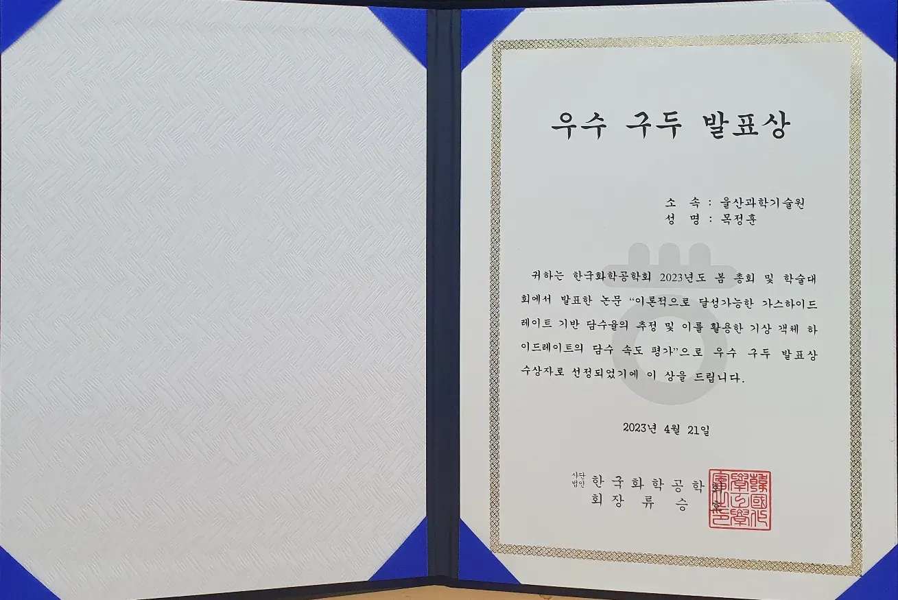 (44919) 울산광역시 울주군 언양읍 유니스트길 50, 울산과학기술원 탄소중립대학원/지구환경도시건설공학과 청정에너지 연구실, 지도교수 : 서용원